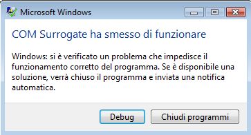 COM Surrogate ha smesso di funzionare